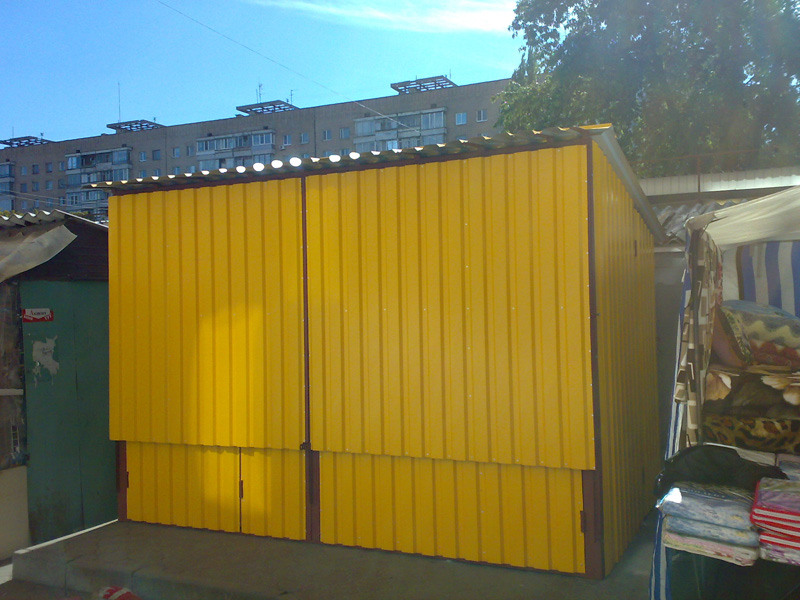 Предлагаем Вашему вниманию металлические гаражи. Каркас гаража изготовлен из квадратных и прямоугольных труб 40×20 и 30×30, рама ворот изготовлена из швеллера 100×50×3, что придает конструкции гаража дополнительную жесткость и исключает перекос створок ворот в будущем. Воротные створки крепятся к раме с помощью воротных петель 22×120 с шариком. Для крыши используются квадратные трубы 40×40.